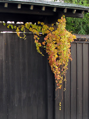 黒塀の蔦が色付いています。これもまた美しい・・・。